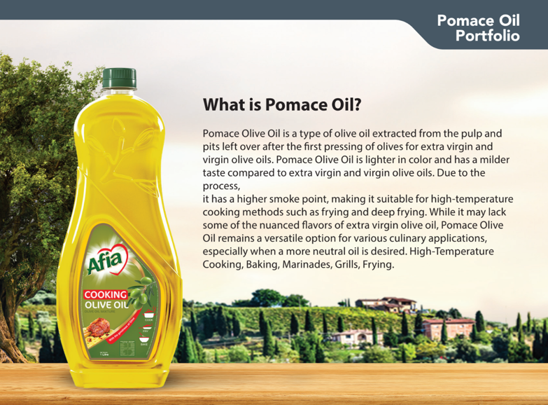 Produced from the olive pulp left after the first press, pomace olive oil is a reliable choice for high-heat cooking. Perfect for frying, baking, and sautéing, it offers consistent quality and versatility for all your culinary needs.