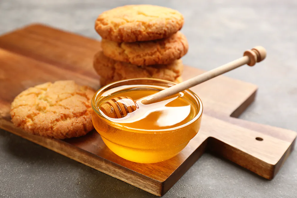Knead all the ingredients except honey in the dough mixer. Finally, add the honey and continue kneading. Break off pieces from the dough and roll them a little smaller than the size of a walnut, arrange them on a baking tray, leaving a bit of space between each pastry, and press them lightly. Bake in a preheated 160°C oven for 12 minutes. Serve it cold. Bon appetite.